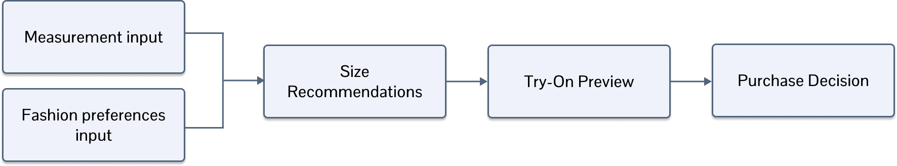 Design a sizing and virtual try-on experience that helps shoppers feel more confident about fit, makes it easier to choose the right size across brands, and supports faster purchase decisions. The flow should feel like a natural part of the shopping journey while keeping steps simple to reduce cognitive load.