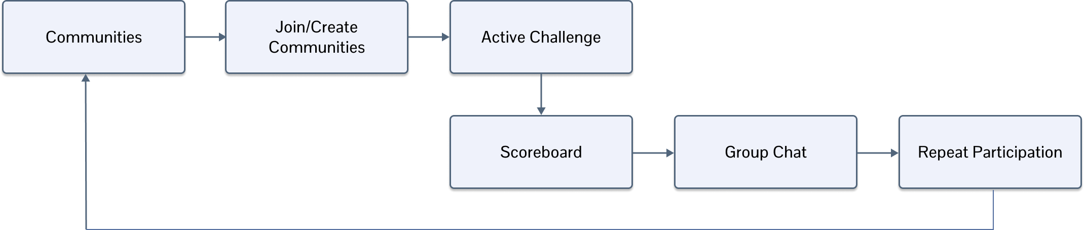 Structured a progression from discovery → active challenge participation.